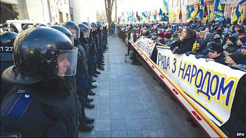 Не переб╕льшуючи, можна сказати, що под╕╖ останнього дня листопада цього року под╕лили життя кра╖ни на «до» ╕ «п╕сля». Потряс╕ння було наст╕льки потужним, що прокинулись нав╕ть т╕, хто зазвичай пол╕тикою не ц╕кавиться. Кривавий ранок суботи з ус╕╓ю очевидн╕стю показав не лише укра╖нцям, а й ус╕й св╕тов╕й сп╕льнот╕ справжн╓ обличчя укра╖нсько╖ диктатури. Щ╕льна лава спецпризначенц╕в оточила студент╕в та актив╕ст╕в громадських орган╕зац╕й, як╕ ман╕фестували свою в╕ддан╕сть ╕де╖ ╓вро╕нтеграц╕╖, та заходилася «виписувати» кийками на ╖хн╕х спинах та головах, власне, те, як «наша» влада бачить перспективу сво╖х вза╓мин з народом. Щоправда, з╕ сл╕в речниц╕ ГУ МВС Укра╖ни в м╕ст╕ Ки╓в╕ Ольги Б╕лик, той зах╕д був з╕н╕ц╕йований аж н╕як не владою, а лише... комунальниками Ки╓ва, яким капосн╕ студенти заважали готувати центральну площу м╕ста до новор╕чних свят. Щир╕сть того пояснення не виклика╓ жодних сумн╕в╕в, адже вс╕м в╕домо, що надання санкц╕╖ на застосування сил спецп╕дрозд╕лу «Беркут» за укра╖нським законодавством належить саме славним ки╖вським см╕ттярам. Отже, акц╕я «Беркута» не ма╓ жодного стосунку до в╕дчайдушних спроб студент╕в та громадських орган╕зац╕й звернути увагу «гаранта» сво╖х прав та свобод на те, що його раптова в╕дмова п╕дписати угоду про ╕нтеграц╕ю Укра╖ни в ╢вропу кардинально розходиться з ╖хн╕ми уявленнями про майбутн╓ Укра╖ни. Реакц╕я укра╖нц╕в, киян зокрема, була ц╕лком прогнозованою для кожного, хто плоть од плот╕ цього народу. До полудня наступного дня на вулиц╕ висипав чи не весь Ки╖в. У нед╕лю вранц╕ на Михайл╕вськ╕й площ╕ ще глухо говорили про те, що судовим р╕шенням, яке н╕бито було прийняте о п’ят╕й ранку, заборонялась хода по Хрещатику та вих╕д на майдан Незалежност╕, але люди все п╕дходили й п╕дходили, ╕ скоро вже стало зрозум╕ло, що жодн╕ судов╕ постанови, жодн╕ заборони не стримають цей потужний пот╕к. Хтось збирався на Михайл╕вськ╕й площ╕, ╕нш╕ — в парку ╕мен╕ Т. Шевченка. П╕сля полудня все це гр╕зно шумуюче людське море нестримно потекло на Хрещатик. Спецпризначенц╕, що густо стояли по периметру сталевого паркану, встановленого на майдан╕, десь зникли. Зал╕зяччя, за яким вони стовбичили, було зметене. Людське море важко витекло на площу, вихлюпнулось на навколишн╕ пагорби. Люди були повсюди. Вони стояли не лише на площ╕. Дехто видерся на довгу стр╕лу п╕дйомного крана, який вс╕ ц╕ дн╕, як вважалося, монтував чудо новор╕чно╖ ╕нсталяц╕╖ — зал╕зну ялинку в╕д влади, ╕нш╕ повибиралися на дахи там же встановлених бутафорських будиночк╕в, ╕нш╕ вже поч╕пляли прапори ╕ на сам╕й ялинц╕. Нарешт╕, на даху автомоб╕ля, що спинився посеред Хрещатика перед Майданом, з’явилися опозиц╕йн╕ л╕дери — Кличко, Тягнибок та Яценюк, закликаючи притягнути винуватц╕в кривавих под╕й суботи до крим╕нально╖ в╕дпов╕дальност╕, а уряд, який сво╖ми д╕ями чи злочинною безд╕яльн╕стю допустив до того, в╕дправити у в╕дставку. Ця ж думка звучала у виступах Дмитра Павличка, Серг╕я Кун╕цина, в╕домо╖ сп╕вачки ╕ одного з модератор╕в громадянсько╖ акц╕╖ на Майдан╕ Руслани Лижичко та письменниц╕ ╤рени Карпи. Присутн╕й на Майдан╕ екс-прем’╓р Польщ╕ Ярослав Качинський в╕дзначив самов╕ддан╕сть студентства у в╕дстоюванн╕ сво