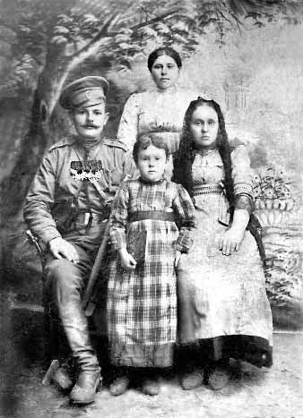 На фото: Микита Тимофійович Смагін з донькою Лізою, дружиною Агафією та її сестрою. 1916 р.