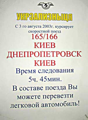 Їхав якось у потязі "Київ - Севастополь" і надибав на чергове безглуздя, яке випестили залізничники. Взагалі будь-яка людина дуже поважає своє ім'я, мусить поважати назву своєї організації. Та чомусь у залізничників із цим туго. Начебто воєнізована організація і мусила б виконувати всі вимоги щодо вживання державної мови - користування на території своєї "держави в державі", недопущення проникнення в ефір кримінальної російськомовної попси та шансону, уніфікації оголошень і т. ін. Давно минули всі контрольні терміни і на те, щоб позбутись всього імперського на залізниці - кілометрових стовпчиків з відстанню до Москви, імперської символіки чи тієї ж застарілої назви "Південно-Західна залізниця". Коли я сказав про це особисто п. Кирпі, він відповів: "Работать надо!" Та ось спостерігаємо "новояз" - слово-покруч "УКРЗАЛИЗНЫЦЯ" - на наведеному знімку. Ці оголошення висять у кожному вагоні, за них відповідають матеріально і морально провідники. Але ж, пане Кирпа, "Укрзалізниця" - марка вашої організації, яка не підлягає спотворенню ні за яких обставин, це честь вашої фірми! Як же Ви допускаєте таке приниження впертими експедиторами, які, маючи здатність перевозити авто потягом, досі не в змозі правильно поставити крапку над "і" і просто не бажають користуватись державною мовою? Хіба Київ чи Дніпропетровськ - місця компактного проживання росіян? Хіба ж авто купують одні росіяни? А згадалась ця подія місячної давності після недавнього перегляду новин на ще не дуже українському "Інтері", де теж було вжите це негарне слово. Цікаво, чи роздратувало б тамтешніх "лінгвістів", якби я назвав їх програму "Подробності"?
