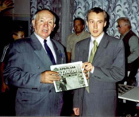 Україна, весь світ чекали поєдинку в Ялті чемпіонів світу з шахів. Та, на жаль, спортивного свята світового значення не відбулося. Розчарування з цього приводу у всіх шахістів світу дуже велике. Переміг не сильніший, а велика політика, яка домінує на шкоду спорту. Але мій земляк з Донбасу, з міста Краматорська, Руслан Пономарьов в короткому інтерв'ю мені - як кореспонденту "Кримської світлиці" - щиро підтвердив, що він готувався і бажав зустрітися з Г. Каспаровим тут, в Ялті, що з його боку немає ніякої провини в тому, що запланований матч з шахів на першість світу не відбувся. Під час підготовки до поєдинку з Г. Каспаровим Р. Пономарьов був частим гостем Ялтинського міського клубу, проводив сеанси одночасної гри. Остання така гра - на 28 дошках відбулася в минулу п'ятницю в санаторії імені В. Куйбишева. Вболівальники старовинної гри нашого міста і столиці України дуже вдячні, по-перше, чемпіону світу Руслану Пономарьову, а також меру Ялти С. Б. Брайку, керівнику спортивного комітету міськвиконкому С. Ф. Калині, керівнику шахової федерації О. Г. Бєляєву, головному лікарю санаторію імені Куйбишева О. Ф. Довгому за велике свято, подароване ялтинцям. Воно було урочистим, навіть з фуршетом після чотиригодинної гри з одного боку - Руслана Пономарьова, а з іншого - ялтинських шахістів. Серед учасників гри з чемпіоном світу були юні таланти, люди з сивиною, ветерани шахового спорту, учасники шахових турнірів України і колишнього Союзу. Чемпіон світу ходив по колу - від гравця до гравця (пройшов майже десять кілометрів - не менше). Але результат - на користь чемпіона: лише один програш і чотири нічиїх. Перемогу отримав студент третього курсу Ялтинського інституту менеджменту Станіслав Філін - кандидат в майстри спорту з шахів. Тренером у нього міжнародний гросмейстер С. Стручкова. Нічиєї добилися кандидат в майстри В. Шапка - працівник рибокомбінату, В. Трущенко - працівник "Водоканалу", Е. Панахова - тренер, викладач ДОЦ з фізкультури і спорту, В. Смагін - пенсіонер. Мер міста і чемпіон світу запевнили всіх учасників гри і уболівальників, що такі зустрічі проводитимуться кожного року.
