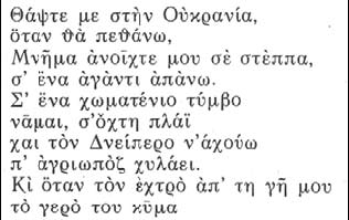 На ╕люстрац╕╖ — фрагмент Шевченкового «Запов╕ту» грецькою мовою