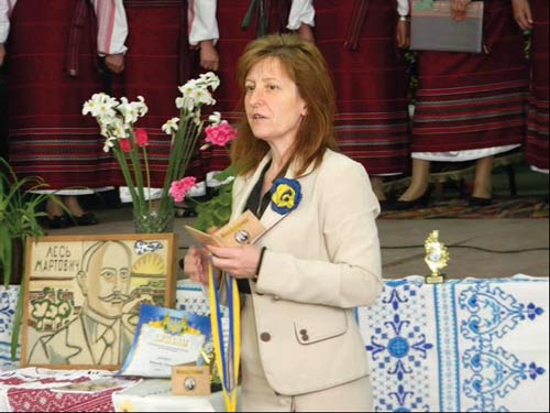 Галина Фесюк п╕д час вручення нагород переможцям конкурсу ╕мен╕ Леся Мартовича, травень 2014 р.