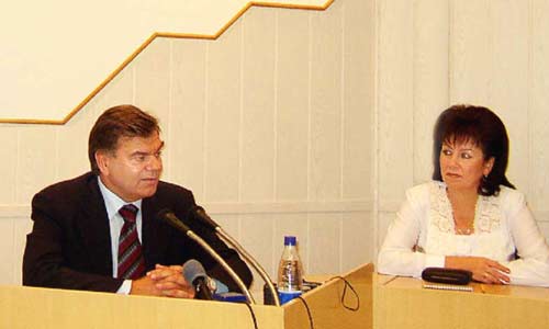 На фото Ю. Жагліна: міністр освіти та науки України Василь Кремень і заступник голови Ради міністрів Криму Віталіна Дзоз під час прес-конференції.
