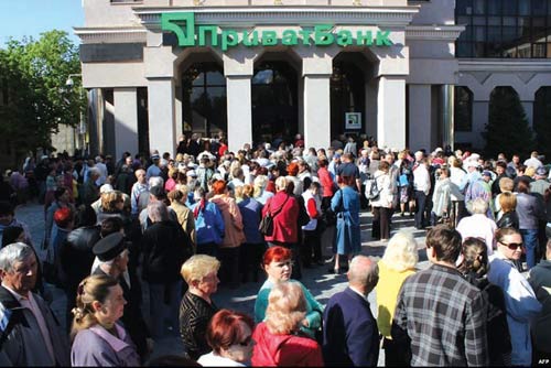 На фото: черга б╕ля «Приватбанку» у С╕мферопол╕