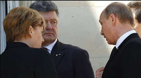 Новообраний Президент Укра╖ни Петро Порошенко ╕ рос╕йський Президент Володимир Пут╕н домовились у Норманд╕╖ про шляхи вир╕шення кризи в Укра╖н╕. Про це пов╕домля╓ прес-служба Президента Франц╕╖ Франсуа Олланда. Зг╕дно з пов╕домленням, перед ланчем Франсуа Олланд ╕ канцлер Н╕меччини Ангела Меркель ╕н╕ц╕ювали розмову Президент╕в Рос╕╖ ╕ Укра╖ни. Порошенко ╕ Пут╕н провели 15-хвилинну зустр╕ч. Оф╕с Олланда стверджу╓, що «чолов╕ки потисли руки ╕ домовились провести найближчими днями переговори про припинення вогню м╕ж укра╖нськими силовиками та пророс╕йськими сепаратистами на сход╕ Укра╖ни». Кр╕м того, Пут╕н ╕ Порошенко обговорили шляхи вир╕шення конфл╕кту, включаючи те, що Рос╕я визна╓ законним обрання Порошенка, так само, як ╕ економ╕чн╕ в╕дносини. «Це був звичайний серйозний обм╕н м╕ж л╕дерами», — сказано в пов╕домленн╕ оф╕су Олланда. В оф╕с╕ додали, що таку зустр╕ч готували к╕лька дн╕в, але тримали у секрет╕ до того моменту, поки вона не в╕дбулася. * * * Президенти Укра╖ни ╕ Рос╕╖ п╕д час неоф╕ц╕йно╖ зустр╕ч╕ в Норманд╕╖ в основному говорили про под╕╖ на сход╕ Укра╖ни, пов╕домив також прес-секретар Президента РФ Дмитро П╓сков. «Бес╕да мала абсолютно закритий характер. Насамперед, йшлося про под╕╖ на сход╕ кра╖ни, про те кровопролиття... Було п╕дтверджено безальтернативн╕сть врегулювання ситуац╕╖ мирним пол╕тичним шляхом», – зазначив Д. П╓сков.