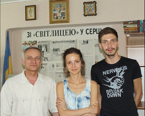 На фото: «Екстрем╕сти» з «Громадського ТБ» Тетяна Козир╓ва та Карен Арзуманян в редакц╕╖ «Кримсько╖ св╕тлиц╕». К╕лька дн╕в тому це ще була наша редакц╕я...