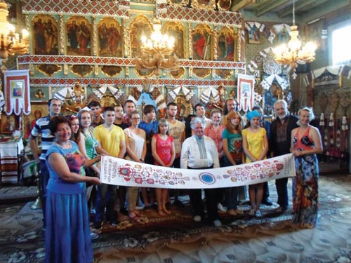 На св╕тлинах: п╕д час освячення вз╕рця для вишивання рушника ╓вропейсько╖ ╓дност╕ (╤ван Рябчук у центр╕, Петро Олар другий праворуч)