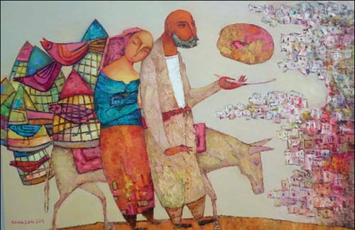 Сонце н╕би подво╖лося в друг╕й половин╕ кримського л╕та, спека зашкалю╓ ╕ показу╓ найвищ╕ температурн╕ показники. Заходжу в прохолоду ст╕н Будинку художника в С╕мферопол╕, а там — таке ж гаряче подв╕йне сонце на виставц╕ «Сх╕дний в╕тер». ╤ це вже не лише в╕д яскравих ракурс╕в природи на полотн╕, а тому що й автор╕в дво╓: заслужений художник Укра╖ни, лауреат Прем╕╖ Криму Рамазан Усе╖нов ╕ заслужений художник Криму Натал╕я Перова. Особливе в╕дчуття св╕тла та декоративност╕ в них — з Узбекистану, зв╕дки вони родом, де навчалися в одному художньому заклад╕ — Ташкентському республ╕канському училищ╕ ╕м. П. Бенькова, т╕льки в р╕зний пер╕од. У Криму Р. Усе╖нов — з 1993 року, а Н. Перова пере╖хала сюди п╕сля зак╕нчення Ки╖всько╖ академ╕╖ мистецтв в 1986 роц╕. ╤ народжена сонцем Аз╕╖ та збагачена морем Криму творч╕сть двох живописц╕в у результат╕ багатор╕чно╖ сп╕впрац╕ об’╓днала в трьох залах Будинку художника проекц╕ю ╖хн╕х власних св╕т╕в, як╕ гармон╕йно доповнюють одне одного в рамках сх╕дного стилю двома поглядами сприйняття д╕йсност╕: чолов╕чим ╕ ж╕ночим. Полотна Р. Усе╖нова — це не лише красива картинка з ч╕ткими граф╕чними л╕н╕ями. Це запрошення до ф╕лософських роздум╕в про смисл буття, м╕сце людини в житт╓вому простор╕. Його авторство вп╕зна╓ш в╕дразу нав╕ть без п╕дпису картин у будь-як╕й колективн╕й експозиц╕╖ за особливою ╕ндив╕дуальною манерою, округл╕стю людей-кокон╕в, ╕ншими художн╕ми знах╕дками. У них велике по╓дну╓ться з реальною предметн╕стю просто╖ людини з дорожн╕м м╕шком на в╕слюку, серйозне ╕ драматичне — з ком╕змом ситуац╕╖, що виклика╓ усм╕шку. Лакон╕чна стил╕зац╕я художником багатошарового зм╕сту сучасност╕ в╕дбува╓ться на площинн╕й декоративност╕ Сходу, де кримськотатарський народ перебував п╕встол╕ття в депортац╕╖. Ск╕льки часу минуло, а н╕чого з пережитого не забулося, вкор╕нилося в св╕домост╕. У Криму близьк╕сть до виток╕в на земл╕ предк╕в, до ╕стор╕╖ свого народу внесла в живопис Р. Усе╖нова нов╕ мотиви: старовинн╕ кам’янист╕ вулички, кримськотатарськ╕ будиночки з червоною черепицею, поряд з якими ростуть кипариси. Сво╖ми верх╕вками, як у м╕нарет╕в, вони д╕стають до хмар. Можуть посуперничати нав╕ть з г╕рськими вершинами, тягнуться ще вище, до самого неба. Дерева — це одна з улюблених тем художника. Якщо зобража╓ персики, то ц╕лий сад. У т╕нь топол╕ посп╕ша╓ в спекотний полудень пастушок, кв╕тучий мигдаль нав╕ва╓ умиротворення ╕ н╕жн╕сть. А чайки, намальован╕ з натури в ╢впатор╕╖, — уособлення динам╕чного азартного руху, можливо, й аж╕отажу та метушливост╕. Натхнення, за його словами, приходить до нього в щоденн╕й робот╕ над картинами, ракурси для яких знаходить у Ялт╕, Севастопол╕, Гурзуф╕, Судаку. Та найчаст╕ше його можна побачити з етюдником у Бахчисара╖. Це його улюблене м╕сце, що да╓ безл╕ч тем для композиц╕йних сюжет╕в. З╕ сво╖м доробком художник пост╕йно виходить до глядач╕в. Його картини демонструвалися на виставках у Криму, Укра╖н╕, Рос╕╖, Узбекистан╕, Туреччин╕, Швейцар╕╖, Франц╕╖, Кита╖, Н╕меччин╕. В╕н був учасником пленер╕в у Хорват╕╖ та Угорщин╕. За картину «Перел╕т птах╕в» удосто╓ний прем╕╖ на Ки╖вському три╓нале в 1998 роц╕. Ряд його живописних роб╕т придбано музеями Моск