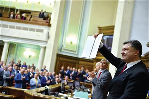 16 вересня Верховна Рада Укра╖ни ╕ ╢вропарламент ратиф╕кували Угоду про асоц╕ац╕ю Укра╖на-╢С. Синхронний процес ратиф╕кац╕╖ в╕дбувся у режим╕ в╕деоконференц╕╖ м╕ж Ки╓вом ╕ Страсбургом, пов╕домля╓ «Укр╕нформ». В ╢вропарламент╕ за в╕дпов╕дну законодавчу резолюц╕ю в╕ддали сво╖ голоси 535 депутат╕в. У Верховн╕й Рад╕ законопроект про ратиф╕кац╕ю Угоди п╕дтримали 355 народних депутат╕в. П╕сля ратиф╕кац╕╖ законодавчими органами Укра╖ни та ╢вросоюзу з 1 листопада 2014 року розпочнеться тимчасове застосування деяких положень пол╕тично╖, ╕нституц╕йно╖ та секторально╖ частин документа. Повно╖ чинност╕ Угода набуде п╕сля завершення ╖╖ ратиф╕кац╕╖ ус╕ма 28-ма кра╖нами-членами ╢С. Ор╕╓нтовний строк виконання Угоди про асоц╕ац╕ю становить 10 рок╕в. Нагада╓мо, Угоду про асоц╕ац╕ю Укра╖ни й ╢вросоюзу п╕дписували в два етапи: 21 березня 2014 року — пол╕тичну частину, а 27 червня 2014 року — економ╕чну. Проект закону про ратиф╕кац╕ю асоц╕ац╕╖ Президент Укра╖ни Петро Порошенко подав у Верховну Раду лише 15 вересня. Це сталося п╕сля того, як у Брюссел╕ 12 вересня м╕н╕стр закордонних справ Укра╖ни Павло Кл╕мк╕н, ком╕сар ╢С з питань торг╕вл╕ Карел де Гухт та м╕н╕стр економ╕чного розвитку РФ Олекс╕й Улюка╓в домовилися в╕дтерм╕нувати передбачене Угодою запровадження поглиблено╖ ╕ всеохоплюючо╖ зони в╕льно╖ торг╕вл╕ до 1 с╕чня 2016 року. Угода про асоц╕ац╕ю нал╕чу╓ понад тисячу стор╕нок, а за сво╓ю структурою склада╓ться з преамбули, семи частин, 43 додатк╕в та трьох протокол╕в. ╥╖ виконання розраховане на 10 рок╕в. У частин╕ «Преамбула, загальн╕ ц╕л╕ та принципи» окреслю╓ться п╕дгрунтя, яке ╕сну╓ сьогодн╕ для укладення Угоди про асоц╕ац╕ю м╕ж Укра╖ною та ╢С, зокрема, визнання з боку ╢С ╓вропейського вибору та ╓вропейських прагнень Укра╖ни як ╓вропейсько╖ кра╖ни, що под╕ля╓ з ╢С сп╕льну ╕стор╕ю та сп╕льн╕ ц╕нност╕, а також визначен╕ ц╕л╕ Угоди, серед яких — створення асоц╕ац╕╖, поступове зближення м╕ж Укра╖ною та ╢С на основ╕ сп╕льних ц╕нностей, поглиблення економ╕чних та торговельних в╕дносин, зокрема, шляхом створення ЗВТ, посилення сп╕вроб╕тництва у сфер╕ юстиц╕╖, свободи ╕ безпеки. Закр╕плюються основн╕ принципи, як╕ лежатимуть в основ╕ асоц╕ац╕╖, передус╕м забезпечення прав людини та основоположних свобод, повага до принципу верховенства права, дотримання принцип╕в суверен╕тету ╕ територ╕ально╖ ц╕л╕сност╕, непорушност╕ кордон╕в ╕ незалежност╕. П╕дкреслю╓ться, що подальш╕ в╕дносини м╕ж Укра╖ною та ╢С базуватимуться також на принципах в╕льно╖ ринково╖ економ╕ки, верховенства права, ефективного урядування тощо. * * * ╢вро╕нтеграц╕я стала укра╖нською нац╕ональною ╕де╓ю, заявив Президент Укра╖ни Петро Порошенко у Верховн╕й Рад╕ п╕д час синхронно╖ ратиф╕кац╕╖ Угоди про асоц╕ац╕ю парламен-тами Укра╖ни та ╢вропи. За словами Президента, «внутр╕шн╕ та зовн╕шн╕ потуги зупинити наш стратег╕чний поступ зазнали ф╕аско. ╤сторичний догов╕р 27 червня в Брюссел╕ було п╕дписано! Сьогодн╕шня синхронна ратиф╕кац╕я буде святом не лише Укра╖ни, а вс╕╓╖ об’╓днано╖ ╢вропи, бо без Укра╖ни об’╓днано╖ ╢вропи не ╕сну╓». Президент заявив, що нев╕дкладно п╕дпише Закон про ратиф╕кац╕ю. «Доручаю Уряду вже завтра затвердити план вико