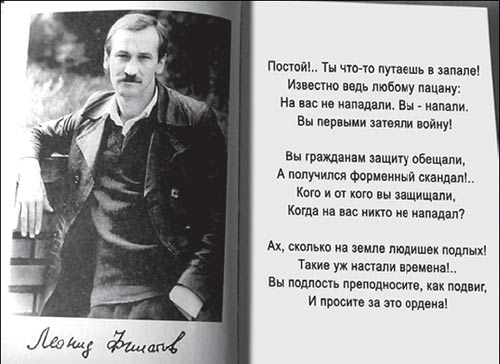 24 грудня 1946 р. народився в╕домий рос╕йський актор, режисер, письменник ╕ телеведучий, народний артист Рос╕йсько╖ Федерац╕╖ Леон╕д Ф╕латов. Його не стало у 2003 роц╕. Цей в╕рш рос╕янина Леон╕да Ф╕латова актуальний сьогодн╕, як н╕коли...