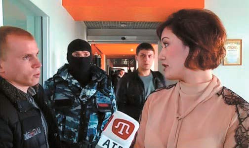 Рос╕йськ╕ силовики, як╕ проводять обшук на територ╕╖ телекомпан╕╖ ATR, перервали ╕нтерв’ю генерального директора телеканалу Ельзари ╤слямово╖ журнал╕стам