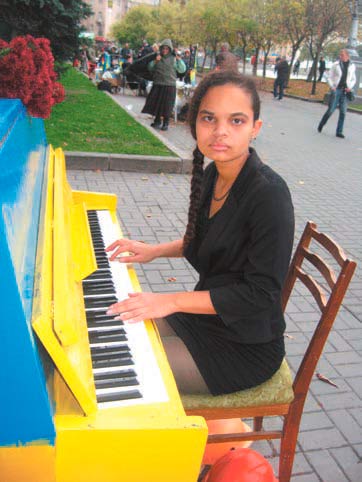 На перший погляд, м╕ж цими поняттями мало сп╕льного. У багатьох укра╖нц╕в словосполучення «Майдан-2014» асоц╕ю╓ться ╕з чорним димом в╕д спалених покришок, роз╕браною брук╕вкою, згор╕лим Будинком профсп╕лок ╕ сотнею загиблих геро╖в. Яка вже там музика, яке мистецтво? Але коли напружимо свою пам’ять, то пригада╓мо: без музики у наших повстанц╕в н╕коли не обходилося. У будь-яких обставинах укра╖нц╕ давали соб╕ раду. ╤ на С╕ч╕ так було, ╕ на Холодноярщин╕, ╕ в Колк╕вськ╕й республ╕ц╕, ╕ в нескореному гуцульському Космач╕. Тому ╕ на Майдан╕ чули ми бандуру, скрипку, соп╕лку, г╕тару... ╤ нав╕ть сурму одного разу почув. ╤ пригадалися тод╕ поетичн╕ рядки з╕ шк╕льно╖ програми: «Чу╓ш, сурми заграли? Час розплати настав!». Але найб╕льше «засв╕тилося» у св╕тових ЗМ╤ жовто-блакитне п╕ан╕но, на якому частенько грали люди в балаклавах. Не т╕льки вони — ус╕ талановит╕ кияни, до кого була прихильна Муза. Один з наших льв╕вських «св╕тличан» радив при нагод╕ познайомитися з киянкою Антуанеттою М╕щенко, адже ╖╖ гра його просто полонила! Т╕льки в жовтн╕ вдалося зустр╕тися з молодою виконавицею. Хоч грала вона для протестувальник╕в ще з 1 грудня 2013 року. Ми разом походили в задум╕ по Майдану, я зробив дек╕лька зн╕мк╕в б╕ля стенд╕в з фотограф╕ями. А вже у грудн╕ 2014 року Антуанетта давала концерт у мо╓му р╕дному Львов╕. При╖хавши на концерт, я побачив Соф╕йку Шох╕ну — доньку друга мо╓╖ юност╕. ╥╖ батько не ма╓ прямого в╕дношення до музики, але й в╕н якоюсь м╕рою позитивно вплинув на переб╕г под╕й на Майдан╕. Справа в тому, що В’ячеслав Шох╕н змалку ц╕кавився бойовими мистецтвами. Попри невисокий зр╕ст, вважався неперевершеним во╖ном ╕ переможцем в ус╕х вуличних сутичках. Такий соб╕ Брюс Л╕ укра╖нського пров╕нц╕йного м╕стечка на Ки╖вщин╕… А ще був борцем за справедлив╕сть ╕, що дуже важливо, — добрим педагогом. Роки минали, а В’ячеслав лише поглиблював сво╖ знання з бойових мистецтв. А головне – навчав ╕нших. В числ╕ його учн╕в були нав╕ть б╕йц╕ спецп╕дрозд╕лу «Беркут». ╤ в тому, що к╕ровоградський «Беркут» в╕дмовився застосовувати силу проти протестувальник╕в, була заслуга ╕ В’ячеслава Шох╕на. Бо командир «Беркуту» був його учнем. Перед виступом Антуанетти М╕щенко я встиг переговорити з талановитою донькою мого друга, яка навча╓ться у льв╕вськ╕й музичн╕й школ╕-╕нтернат╕ ╕мен╕ С. Крушельницько╖. Соф╕йка також закохана в музику. Ось що вона розпов╕ла мен╕: — Вже четвертий р╕к п╕шов, як я навчаюся у Львов╕. Дуже звикла до цього м╕ста! ╤ св╕ту трохи побачила. Один, а ╕нколи й два рази на р╕к ╖жджу в Польщу. П╕ан╕стичний форум проводиться в м╕ст╕ Сяноку. Пот╕м да╓мо концерти в р╕зних м╕стах. Була ще на конкурсах у Кельце ╕ в Агустов╕. Побувала ╕ в Дрезден╕ (Н╕меччина), а також у Чех╕╖ – це в 2014 роц╕. В лютому знову збираюся в Польщу, цього разу в Кошице. Ого! Соф╕йка даремно час не витрача╓… Тато теж таким був. Я вловив момент ╕ сфотографував ╖х разом з Антуанеттою. А дал╕ розпов╕дала вже гостя, учасниця ╢вромайдану, бо╓ць «музично╖ сотн╕». Виявля╓ться, до тих под╕й Антуанетта М╕щенко була звичайною студенткою, вчилася в Ки╖вськ╕й консерватор╕╖. Тепер уже зак╕нчила ╖╖ та вступила на асистентуру — клас всесв╕тньо в╕домого професора Козлова. На Майдан╕ познайомилася