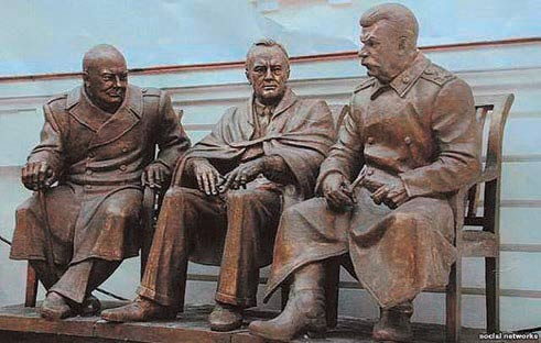 Цього тижня в Л╕вад╕йському палац╕ ма╓ в╕дбутися в╕дкриття пам’ятника «велик╕й тр╕йц╕» – главам держав, як╕ брали участь в Ялтинськ╕й конференц╕╖: Йосипу Стал╕ну, Франкл╕ну Рузвельту та В╕нстону Черчиллю. Монумент, виготовлений в╕домим скульптором Зурабом Церетел╕, збиралися встановити ще 10 рок╕в тому, але тод╕ ця ╕н╕ц╕атива викликала обурення ╕ протести з боку пол╕тик╕в та громадськост╕, тому в╕д ц╕╓╖ ╕де╖ вир╕шили в╕дмовитися. Зараз думки кримсько╖ громадськост╕ щодо встановлення скандального пам’ятника розд╕лилися: одн╕ схвалюють ╕н╕ц╕ативу, називаючи це даниною ╕сторичн╕й пам’ят╕, ╕нш╕ – виступають проти, вважаючи, що таким чином в╕дбува╓ться «реан╕мац╕я стал╕н╕зму».