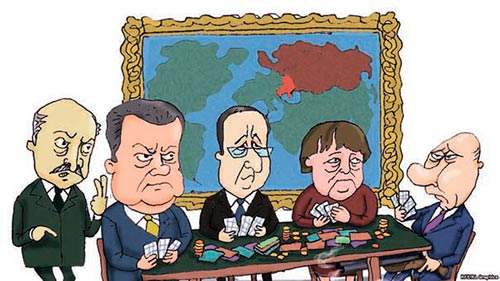 Див╕ться, що в╕дбува╓ться п╕сля 00.00 годин 15 лютого! Погодившись з М╕нськими протоколами, Пут╕н не припиня╓ боротьби за те, щоб нав’язати ус╕м сво╓ трактування угоди. Рос╕я заявила, що не ╓ стороною переговор╕в ╕ не в╕дпов╕да╓ за припинення вогню, блискавично подала у РБ ООН св╕й проект резолюц╕╖ «в розвиток М╕нських домовленостей». Паралельно Захарченко об╕ця╓ силою взяти Мар╕уполь ╕ Харк╕в. ╤ усе це на тл╕ безперервного обстр╕лу ╕ спроб наступу, демонстративного п╕дтягування до кордону бронетехн╕ки ╕ св╕жих резерв╕в.