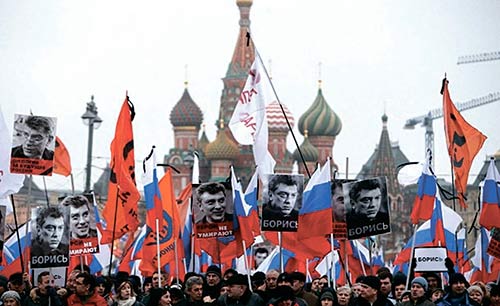 У н╕ч з 27 на 28 лютого в центр╕ Москви було вбито в╕домого рос╕йського пол╕тика-опозиц╕онера, сп╕вголову парт╕╖ «РПР-Парнас» Бориса Н╓мцова. Пол╕тик йшов ╕з супутницею Великим Москворецьким мостом, де вбивця к╕лька раз╕в вистр╕лив йому у спину ╕ зник на автомоб╕л╕. В╕д чотирьох отриманих поранень Н╓мцов помер на м╕сц╕...
