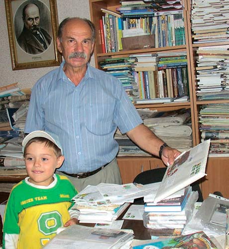 НА ФОТО: ДАНИЛО АНДР╤ЙОВИЧ КОНОНЕНКО З ВНУКОМ ДАНИЛКОМ У РЕДАКЦ╤╥, ДЕ НАРОДЖУВАЛОСЯ «ДЖЕРЕЛЬЦЕ». 2007 Р╤К.