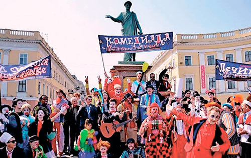 День гумору, см╕ху ╕ веселих розваг 1 кв╕тня в Одес╕ н╕хто й н╕коли не називав днем дурня. Одеськ╕ дотепники переконан╕, що почуттям ╕скрометного гумору над╕лен╕ лише люди духовно й ╕нтелектуально розвинен╕. Саме так╕ оселилися у «Дом╕ клоун╕в» п╕д орудою народного артиста Укра╖ни Георг╕я Дел╕╓ва. Нин╕шнього року традиц╕йно╖ масово╖ ходи ╕ кавалькади ряджених вир╕шено було не влаштовувати через загрозу провокац╕й ╕ диверс╕й, тож почесну м╕с╕ю розважати людей цього разу взяли на себе учасники п’ятого М╕жнародного фестивалю «Комед╕ада». Десятки клоун╕в, як╕ напередодн╕ змагалися у майстерност╕ см╕шити людей, пройшлися п╕д живу музику веселим парадом Приморським бульваром та Дерибас╕вською вулицею. По дороз╕ артисти об╕ймалися ╕ фотографувалися з перехожими, демонстрували сво╓ вм╕ння. Цього року «Комед╕ада» з╕брала п╕д сво╖м дахом артист╕в ╕з Укра╖ни, Австр╕╖, Н╕меччини, ╤тал╕╖, Польщ╕, Рос╕╖ ╕ США. При цьому лише дванадцять учасник╕в були конкурсантами фестивалю, а ще 9 носили горде звання театр╕в-хедлайнер╕в. Виявля╓ться, брати участь у конкурс╕ можна лише один раз. В╕дкрив свято президент фестивалю Георг╕й Дел╕╓в. В╕н вискочив ╕з коробки, обкле╓но╖ постерами «Маски-шоу», як чорт ╕з табакерки, ╕ постав у сво╓му ф╕рмовому червоному смок╕нгу. За його словами, цього року свято в╕дбува╓ться п╕д дев╕зом «См╕х уряту╓ св╕т». А дал╕ були змагання, п╕д час яких глядач╕ мали змогу вибирати володаря «призу симпат╕й». Головною ж под╕╓ю стало урочисте зас╕дання клоун╕в, на якому вони п╕дписали звернення до Генерально╖ Асамбле╖ ООН, ЮНЕСКО та ╕нших м╕жнародних орган╕зац╕й про проголошення 1 кв╕тня Всесв╕тн╕м днем клоуна. Як зазначила продюсер фестивалю Натал╕я Дел╕╓ва, перша згадка про першокв╕тнев╕ жарти дату╓ться XVI стол╕ттям. Клоун╕в люблять д╕ти й доросл╕. 1 кв╕тня у багатьох кра╖нах в╕дзнача╓ться як свято гумору, веселощ╕в, жарт╕в. Кр╕м того, в цей день в ООН не заре╓стровано жодного м╕жнародного чи всесв╕тнього дня. «Резолюц╕я прийма╓ться Генеральною Асамбле╓ю ООН, а це голосування делегат╕в 193 кра╖н св╕ту. Звичайно, це не просто ╕ довго, але для безжурних клоун╕в нема╓ перешкод!» – сказала Натал╕я Дел╕╓ва. Одн╕╓ю «Комед╕адою» одесити не обмежилися. У Рос╕йському театр╕ в╕дбувся фестиваль «П╕вденна л╕га см╕ху», у ф╕лармон╕╖ виступали «Одеськ╕ манси» та ╕нш╕ команди КВК, у оперному театр╕ глядач╕в звеселяв знаменитий «Квартал-95» на чол╕ з Володимиром Зеленським. А клоуни встигли цими днями в╕дв╕дати онкохворих д╕тей, маленьких б╕женц╕в ╕з зони АТО та поранених, як╕ л╕куються у в╕йськовому шпитал╕.