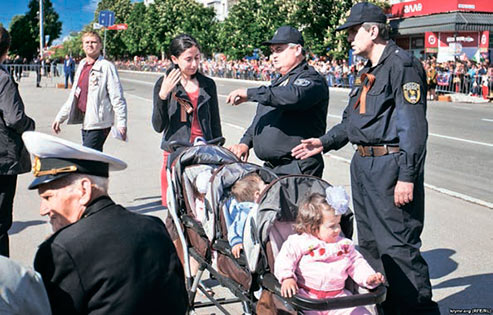 Непри╓мний ╕нцидент стався п╕д час святкових заход╕в з нагоди Дня Перемоги в С╕мферопол╕ 9 травня. Як розпов╕ли «Крим.Реал╕╖» очевидц╕, мама тр╕йн╕ Гульшан Меметова, яка прийшла на парад разом ╕з маленькими д╕тьми, не змогла пройти до м╕сця, зв╕дки спостер╕гали за под╕ями ветерани Велико╖ В╕тчизняно╖ в╕йни та ╕нш╕ присутн╕.