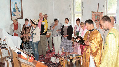 На фото: 2014 р╕к, Яблучний Спас у храм╕ Преображення Господнього Укра╖нсько╖ православно╖ церкви Ки╖вського патр╕архату в с. Мраморному С╕мферопольського району. Службу пров╕в отець ╤ван Катькало (молодший) Фото В. Качули