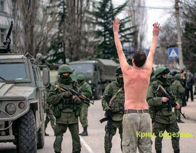 Дуже образливо, насправд╕, коли про твою в╕тчизну дозволя╓ висловлюватись под╕бним чином багатий усп╕шний сус╕да. Образа та ще глибша в╕д розум╕ння влучност╕ пор╕вняння, в╕д розум╕ння, що маг╕стри та ментори, як виявилось, мали рац╕ю, ╕ начебто добре продумана й майстерно реал╕зована операц╕я «Крим» ╕ недвозначний приклад ру╖н донбасько╖ недорос╕╖ не справили оч╕куваного Режисером враження н╕ на впертих хохл╕в, н╕, тим б╕льше, на клятих п╕ндос╕в. Б╕льше того, намагання застояти сво╖ лег╕тимн╕ ╕нтереси, сво╓ право на так╕ споконв╕чн╕ рос╕йськ╕ територ╕╖, як Кавказ, Крим, Хохлянд╕я, Чухлянд╕я, останн╕м часом виклика╓ все б╕льше роздратування ╕ в╕дверту протид╕ю. Може, й справд╕ щось зм╕нилося в св╕т╕, бо зам╕сть того, щоб, п╕д╕бгавши хвоста, зача╖тися та чекати сво╓╖ черги, як те було в 1938-му, ╢вропа на╖жачилась. Та що там ╢вропа! Нав╕ть усп╕шне на загал при╓днання Криму, попри прогнозовану безпорадн╕сть ки╖всько╖ хунти, в╕дбулося зовс╕м не так гладко, як при╓днання Австр╕╖ до Рейху. Так, ╕ тут, ╕ там уздовж дор╕г, по яких вповзали колони бронетехн╕ки, довгими рядами стояли туб╕льц╕. Та коли там вони радо всм╕халися, в╕тально вимахуючи прапорцями з╕ свастикою при╓днувач╕в, то тут, навпаки, дивилися гн╕вно, демонстрували кольори сво╓╖ держави, сво╓╖ нац╕╖, а ще плакати з вимогою забиратись геть. Якщо австр╕йське в╕йсько не чинило жодного спротиву аншлюсу, то укра╖нське в╕йсько, нав╕ть зраджене на р╕вн╕ найвищого кер╕вництва, ще три тижн╕ гол╕руч, попри заборону свого головнокомандувача застосовувати зброю, утримувало сво╖ гарн╕зони. ╤ це при тому, що основну масу того в╕йська складали т╕ сам╕ кримчани.