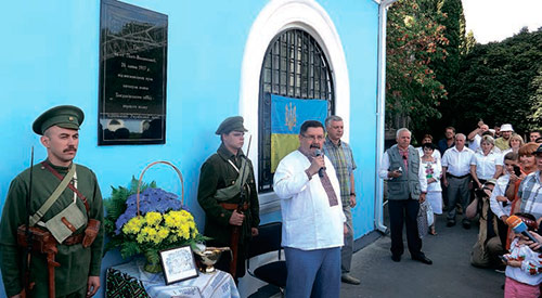 22 серпня на станц╕╖ П╕вденно-Зах╕дно╖ зал╕зниц╕ Ки╖в-Волинський (ран╕ше Пост-Волинський) було урочисто в╕дкрито мемор╕альну дошку на пам’ять про загиблих тут вояк╕в Першого укра╖нського козачого ╕мен╕ гетьмана Богдана Хмельницького полку. Це була перша укра╖нська в╕йськова частина, сформована на добров╕льних засадах 1 травня 1917 року у Ки╓в╕. Цим було покладено початок укра╖н╕зац╕╖ в╕йськових частин рос╕йсько╖ арм╕╖. 26 липня 1917 року на вимогу командування Ки╖вського в╕йськового округу Укра╖нська Центральна рада дала згоду на виведення полку на П╕вденно-Зах╕дний фронт. Полк ╖хав захищати Рос╕йську державу. Але ненависть рос╕йських шов╕н╕ст╕в до всього укра╖нського була наст╕льки великою, що вже при в╕д’╖зд╕ богдан╕вц╕в почали обстр╕лювати. На станц╕╖ Пост-Волинський рос╕йськ╕ солдати ╕ донськ╕ козаки в╕дкрили кулеметний ╕ рушничний вогонь по вагонах з укра╖нськими в╕йськовиками. Богдан╕вц╕ не мали чим в╕дпов╕сти. ╥хня зброя лежала в опломбованому вагон╕. Рос╕яни вс╕ляко збиткувалися над беззбройними укра╖нцями ╕ говорили, що це — в╕дплата ╖м за прагнення незалежно╖ Укра╖ни. За п╕драхунками укра╖нського ╕сторика Дмитра Дорошенка, загинуло 16 богдан╕вц╕в, а 100 було поранено. За ╕ншими даними, загинуло майже 100 укра╖нц╕в, а вноч╕ рос╕яни розстр╕ляли ще близько 50 вояк╕в. Укра╖нська Центральна рада порушила з приводу цього злочину справу, яка так ╕ не була завершена. Пот╕м богдан╕вц╕ в╕дзначилися бойовим завзяттям у фронтових операц╕ях. Наприк╕нц╕ жовтня полк повернувся до Ки╓ва ╕ брав участь у збройн╕й боротьб╕ за Укра╖нську державу. Президент ╤сторичного клубу «Холодний Яр» письменник ╕ ╕сторик Роман Коваль пров╕в урочисте в╕дкриття мемор╕ально╖ дошки пам’ят╕ богдан╕вц╕в. В╕н наголосив, що под╕╖ 98-р╕чно╖ давнини перегукуються ╕з сучасн╕стю. ╤ тод╕, й тепер Укра╖на зазнала збройного нападу рос╕йських ╕мпер╕ал╕ст╕в. На в╕дкритт╕ був присутн╕й Володимир Бражник, батько якого ╤ван Бражник командував взводом богдан╕вського полку ╕ розпов╕в сину про трагед╕ю на Посту-Волинському через 50 рок╕в. Мемор╕альну дошку освятив настоятель Свято-Микола╖вського храму на Татарц╕ в Ки╓в╕ о. Тарас Мельник. В╕н зазначив, що к╕лька дн╕в перед тим освячував пам’ятник укра╖нським во╖нам, як╕ загинули на Донбас╕. Зворушливим був виступ Уляни Гайдук, сестри ╤лл╕ Гайдука, десантника 25-╖ аеромоб╕льно╖ бригади, який загинув у л╕таку ╤л-76 минулого року. За тиждень до загибел╕ йому виповнився 21 р╕к. — У нас було щасливе дитинство, — розпов╕дала пан╕ Уляна. — Мама вчила нас любити Бога й Укра╖ну. ╤лля Гайдук був на Майдан╕ сотником ╤нгульсько╖ паланки. Згодом чотири м╕сяц╕ брав участь у боях на сход╕ Укра╖ни, визволяв полонених. У перервах м╕ж боями юнак читав книгу «Чорний Ворон» Василя Шкляра ╕ взяв соб╕ псевдо Чучупака. Навесн╕ ╤лля збирався одружитися. Його кохана д╕вчина Юля овдов╕ла, не встигнувши стати дружиною. Нин╕ проводиться зб╕р кошт╕в на видання книги про загиблих у л╕таку ╤л-76. Про спадков╕сть визвольно╖ боротьби укра╖нсько╖ нац╕╖ говорили м╕н╕стр осв╕ти Серг╕й Кв╕т, голова ОУН Богдан Червак, учасник визволення Мар╕уполя у склад╕ полку «Азов», один ╕з жертводавц╕в кошт╕в на мемор╕альну дошку Дмитро Савченко, начальник 
