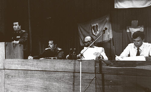 Володимир Мулява у сво╖й допов╕д╕ докладно виклав оц╕нку пол╕тично╖ ситуац╕╖ Народного Руху Укра╖ни. В╕лен Мартиросян у сво╖й допов╕д╕ п╕ддав критиц╕ недол╕ки в кадров╕й робот╕ ЗС СРСР, розпов╕в про генерал╕в, як╕ сво╓ю повед╕нкою паплюжать в╕йськову службу. Свою допов╕дь я присвятив питанню про соц╕ально-правовий захист в╕йськовослужбовц╕в. Виступ╕в було багато, але вс╕ ми були одностайн╕ у тому, що Збройним Силам Укра╖ни бути! Тому в сво╖й резолюц╕╖ 1-й з’╖зд оф╕цер╕в-громадян Укра╖ни висунув перед Верховною Радою Укра╖ни вимогу про створення нац╕ональних Збройних Сил виключно правовим парламентським шляхом. 1-й з’╖зд проходив на високому патр╕отичному р╕вн╕ ╕ визначив шляхи подальшого розвитку нац╕онально╖ св╕домост╕ в╕йськових.