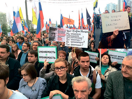 У московському район╕ Мар’╖но у нед╕лю, 20 вересня, пройшов м╕тинг рос╕йсько╖ опозиц╕╖ «За зм╕нюван╕сть влади». За даними рос╕йсько╖ орган╕зац╕╖ «Б╕лий л╕чильник», у ньому взяли участь близько семи тисяч людей. М╕тингувальники вимагали скасування цензури, зв╕льнення пол╕тв’язн╕в, допуску опозиц╕╖ на вибори, припинення в╕йни на сход╕ Укра╖ни та боротьби з корупц╕╓ю. Спочатку прихильники рос╕йського опозиц╕йного пол╕тика Олекс╕я Навального планували орган╕зувати у нед╕лю ходу по Бульварному к╕льцю ╕ м╕тинг на проспект╕ академ╕ка Андр╕я Сахарова. Однак мер╕я в╕дмовилася погоджувати акц╕ю протесту у центр╕ столиц╕, пославшись на проведення Великого московського марафону. Учасники акц╕╖ прийшли з державними прапорами РФ й опозиц╕йного руху «Сол╕дарн╕сть». На сцен╕, де виступали л╕дери рос╕йсько╖ опозиц╕╖, встановлено банер «За зм╕нюван╕сть влади». Москвич╕ тримали плакати з написами: «Хто вбив Н╓мцова?», «Пут╕н — не цар, а чиновник», «Допитайте Кадирова», «Вова д╕став». М╕тингар╕ скандували: «Свободу пол╕тв’язням!». «Чотири роки тому, 24 вересня 2011 року, на з’╖зд╕ «Единой России» Пут╕н ╕ Медвед╓в оголосили про «рок╕ровочку», поставивши всю кра╖ну перед фактом: влада в Рос╕╖ остаточно узурпована ╕ розц╕ню╓ться як дов╕чне право д╕ючого правителя. Утримання влади стало ╓диним сенсом ус╕х д╕й державних орган╕в. 20 вересня 2015 року ми виходимо на м╕тинг, щоб вимагати зм╕нюваност╕ влади», — заявили орган╕затори. Як заявив УН╤АН рос╕йський опозиц╕онер Олекс╕й Навальний, «огидна шахрайська акц╕я двох шахра╖в, укладена на з’╖зд╕ шахра╖в, стала поворотною точкою в нов╕й ╕стор╕╖ Рос╕╖». «Якщо до 24 вересня 2011 року можна було говорити, що влада трима╓ться на цензур╕, брехн╕ та обман╕, але принаймн╕ сама ╕дея пер╕одично╖ зм╕ни влади публ╕чно не п╕ддавалася сумн╕ву, то п╕сля — узурпац╕я ╕ подальше дов╕чне утримання влади Пут╕ним ╕ його б╕знес-партнерами стало сенсом вс╕х р╕шень ╕ д╕й державно╖ машини», — вважа╓ Навальний. В╕н переконаний, що для утримання ╕ зм╕цнення влади використову╓ться все – «в╕д в╕йни ╕ телепропаганди до пол╕тв’язн╕в ╕ дурниць, начебто знищення продукт╕в». Фальсиф╕кац╕╖ на виборах до Держдуми 2011 року остаточно позбавили владу лег╕тимност╕, стали прямим насл╕дком т╕╓╖ «рокировочки», — додав опозиц╕онер. «Сп╕льних поход╕в у Москв╕ не було п╕вроку — з часу вбивства Бориса Н╓мцова. Великого м╕тингу у нас не було п╕втора року», — сказав Навальний. «Нам варто з╕братися, обговорити важлив╕ реч╕ ╕ продемонструвати цим дивним людям, як╕ вважають, що у них у приватн╕й власност╕ може перебувати ц╕ла кра╖на, що ми тут живемо ╕ ми якось не дуже планували жити в монарх╕╖», — додав в╕н.