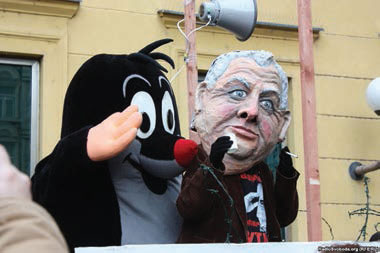 В рамках карнавального маршу вулицями Праги у супровод╕ м╕н╕атюрних танк╕в та демон╕в пройшов «президент Рос╕╖ Володимир Пут╕н» ╕з пап’╓-маше. Не обд╕лили увагою ╕ чеського президента М╕лоша Земана: «Безсумн╕вно, вони (чехи – ред.) ним (президентом – ред.) незадоволен╕. ╤ сьогодн╕ це можна бачити, коли його висм╕юють. Кумедний Земан, котрий курить, жахливо вигляда╓, у майц╕, на як╕й намальований Пут╕н», – прокоментувала карикатурн╕ костюми на марш╕ учасниця Празького Майдану Катерина Скрипник. Незадоволення сво╖м президентом чехи висловили також на акц╕╖ «Картка для майбутнього президента», що була сп╕взвучною з минулор╕чними червоними картками президенту. Ось т╕льки цього року учасники акц╕╖ також запропонували власних кандидат╕в на пост президента. Адже «президент мав би п╕дтримувати жертв кремл╕вського режиму, а не кремл╕вський режим», – наголошу╓ напис на полотн╕, що стало тлом для п╕дпис╕в.