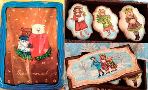 Так╕ ун╕кальн╕ ╖ст╕вн╕ витвори мистецтва можна побачити ╕ скуштувати лише в Одес╕. Виготовляють чудо-пряники в стил╕ старовинних лист╕вок у кондитерськ╕й «Бубликoff» майстерн╕ Оксани Бубликово╖. Зараз кондитери вже готують подарунки до Новор╕чних свят. 4 грудня вони пов╕домили, що вже виготовили р╕здвяну скриньку з поздоровленнями. ╤ сама скринька, ╕ кожне в╕тання – це ╖ст╕вн╕ й розписан╕ як лист╕вки пряники. На створення кожного елемента йде пряник ╕з т╕ста за авторським рецептом, а також спец╕альна глазур. Майстер покрива╓ солодке полотно натуральною основою ╕ береться за розпис. Малюють картини спец╕альними пензлями. Автор тако╖ вип╕чки Оксана Бубликова уже потрапила в Книгу рекорд╕в Укра╖ни, коли у ╖╖ майстерн╕ створили 12-метровий ╕мбирний пряник-картину на Новий 2015 р╕к. А ще вони подивували одесит╕в ╕ гостей м╕ста велетенським томатним тортом ╕ тортом, присвяченим морськ╕й столиц╕ Укра╖ни. «Якщо розглядати розписний пряник як подарунок, то це не подарунок за велик╕ грош╕, а подарунок в╕д душ╕. В╕н принесе багато позитивних емоц╕й. Подарунок, який людина оц╕нить б╕льше вс╕х дорогих подарунк╕в у св╕т╕», — переконана майстер «Бубликоff» Оксана Бубликова. Терм╕н збер╕гання таких подарунк╕в – 2 м╕сяц╕. Вони не черств╕ють завдяки меду. Спочатку вип╕кають т╕сто. Пот╕м вир╕б заливають цукровою глазур’ю. Добу пряники висихають, а дал╕ вже за смаколики беруться художники. Тоненькими пензликами вони малюють орнаменти ╕ створюють на поверхн╕ картини й пишуть добр╕ побажання. Пан╕ Оксана пригаду╓, як одного разу майстринь попросили п╕дготувати подарунок для колекц╕онера маяк╕в. Тод╕ вони подарували йому ц╕лу коробку з пряниками, на яких намалювали р╕дк╕сн╕ маяки з усього св╕ту. А нещодавно в╕дправили коробку пряник╕в у Н╕меччину для чолов╕ка, який займа╓ться удосконаленням двигун╕в для автомоб╕л╕в «Формули-1». «На пряничках ми зобразили модел╕ машин, як╕ брали участь у гонках з 1960-х рок╕в до нашого часу. Ул╕ — так звуть нашого знайомого, — побачивши подарунок, розплакався», — пригадують кондитери ╕ додають, що залюбки малюють на пряниках ╕ геро╖в мультф╕льм╕в, ╕ веселих д╕ток, ╕ просто душевн╕ картинки.
