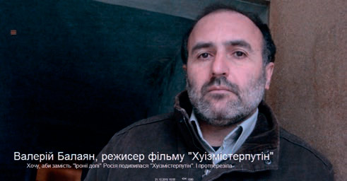 Прем’╓ра документального ф╕льму к╕норежисера Валер╕я Балаяна «Ху╕зм╕стерпут╕н» про мах╕нац╕╖ правлячого диктатора сус╕дньо╖ держави менш як за добу п╕сля презентац╕╖ в Ки╓в╕ стала х╕том ╤нтернету. Про те, як створювався ф╕льм, в╕домий документал╕ст розпов╕в в ексклюзивному ╕нтерв’ю «Укр╕нформу».
