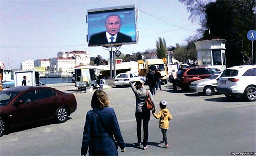 У Севастопол╕, як ╕ в ╕нших м╕стах Криму, «пряму л╕н╕ю» рос╕йського президента В. Пут╕на транслювали з великих екран╕в. Бажаючих послухати, як бачимо, не густо...