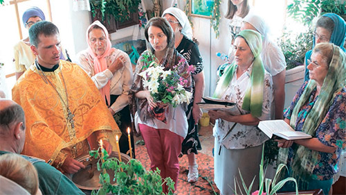 На Пресвяту Тр╕йцю в прихорошеному кв╕тами ╕ зеленню затишному домовому храм╕ Святого ╤вана Во╖на в Перевальному було багатолюдно. Прийшли не лише односельц╕, чимало прихожан, багато — з д╕тками, при╖хали з ╕нших кримських м╕ст. Намолене тут м╕сце, дивна кримська передг╕рна природа, тиша, спок╕й — подал╕ в╕д т╕╓╖ «цив╕л╕зац╕╖», що через суд в╕дбира╓ в Укра╖нсько╖ православно╖ церкви Ки╖вського патр╕архату у С╕мферопол╕ прим╕щення. А тут церква — домашня, тож зась!