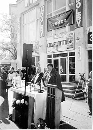 "Ну що ж, - задумливо відізвався той, - вони люди як люди. Люблять гроші, але так було завжди... Людство любить гроші, з чого б ті не були зроблені: чи з шкіри, чи то з паперу, бронзи або золота... Ну легковажні... ну, що ж... і милосердя інколи доходить до їх сердець...". Це Михайло Булгаков вустами Воланда мовить про незнищенну в усі часи ваду людства - пристрасть до грошей. Час спливає, а фраза майстра пера, здається, що не рік, то стає крилатішою. Хоч ми й говоримо про епоху Водолія, що нібито покликана геть усіх водночас одуховнити, та щодня декларуємо відродження цієї рідкісної чесноти через набуту нами незалежність, але пророче слово письменника коли-не-коли та й вихопить з натовпу лики знайомих персонажів. Але хто до тих пророчих слів тепер дослухається? Отож і маємо з одного боку указ Президента про передачу віруючим культових споруд, а з іншого - у центрі Севастополя, в колишньому костьолі св. Климента (тепер дитячий кінотеатр "Дружба") на місці олтаря платний туалет для потреб городян та наших гостей. І що характерно, таких "ринкових" змін кінотеатр зазнав не так давно, саме відтоді, як місцева римсько-католицька громада святого Климента розпочала клопотання про повернення храму, побудованого на початку минулого століття на кошти місцевих прихожан. Сам же кінотеатр давно перестав бути дитячим. Там тепер із заокеанськими бойовиками конкурують недолугі російські, на зразок сумнозвісного "Брат-2". А джерелом доходів, може, й не тіньових, окрім туалета, стали пункт обміну валют, інтернет-кафе тощо. Пам`ятається, нунцій Папи Римського М. Етерович, перед приїздом його в Україну, відвідав наше місто і, звичайно ж, звертався з клопотанням до властей про передачу храму віруючим. Відмова, як і аргументи, були приголомшливими: мовляв, за радянських часів, аби перебудувати споруду в кінотеатр, влада витратила чимало грошей. Послу США в Україні Карлосу Паскуалю відповіли дещо м`якше. Мовляв, міська Рада розгляне це питання. Та віз і нині там. 2 листопада римсько-католицька громада відправила месу та молебень за усопшими під стінами колишнього храму (на фото). Боляче було дивитися, як люди під час молитви ставали на коліна просто на асфальт. ...Люди як люди... люблять гроші, з чого б ті не були зроблені... А ось щодо милосердя, то тут Мессір, здається, перебільшив...