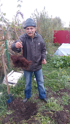 На фото: недавн╕й кримчанин Олександр Польченко ╕ «внутр╕шньо перем╕щена» кримська калина у борисп╕льському саду…