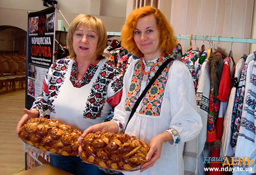 (Зв╕т про м╕жнародний фестиваль «Балт╕йськ╕ зор╕» публ╕ку╓ться з╕ згоди редакц╕╖ терноп╕льсько╖ газети «Наш день». Продовження буде) На фото: майстрин╕ В╕ра Матковська ╕ Тетяна Охрицька в Риз╕ зустр╕чають гостей фестивалю укра╖нськими короваями