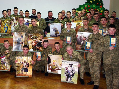 На фото: ╕сторики у гостях в л╕це╖ст╕в В╕йськово-морського л╕цею