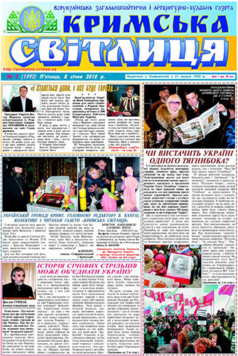 Р╕вно с╕м рок╕в тому, на початку с╕чня 2010 року, ще задовго до всяких «зелених чолов╕чк╕в», «кримських весен» й анекс╕й, за демократичного укра╖нського (ще Ющенкового) правл╕ння ╕ за розпорядженням з Ки╓ва у Криму… було арештовано два перш╕ с╕чнев╕ номери «Кримсько╖ св╕тлиц╕». Сталося те п╕сля того, як з того ж таки Ки╓ва факсом до редакц╕╖ у С╕мферопол╕ було передано наказ про зв╕льнення головного редактора В. Качули за н╕бито зл╕сне невиконання наказ╕в та розпоряджень ки╖вського начальства. Те «зл╕сне невиконання», власне, полягало в тому, що В. Качула категорично в╕дмовився «оптим╕зувати» так нелегко виплеканий у Криму редакц╕йний колектив – скоротити його на догоду ки╖вським «дядькам»-чинушам, ╕ в╕дчайдушно протестував проти ще тод╕ задуманого переведення редакц╕╖ кримсько╖ укра╖нсько╖ газети до Ки╓ва. Згодом чиновн╕ ки╖вськ╕ пройдисв╕ти, використовуючи сво╓ службове становище, намагалися за сфабрикованими звинуваченнями у якихось, ними вигаданих, ф╕нансових зловживаннях притягти редактора до крим╕нально╖ в╕дпов╕дальност╕, але цей абсурд був спростований численними перев╕рками й судами. В. Качулу восени 2010 року було поновлено на посад╕ головного редактора, проте «Кримська св╕тлиця» на той час вже з п╕вроку не виходила, а редакц╕йн╕ прим╕щення були опечатан╕ за борги. Призначений на початку 2010 року Ки╓вом зам╕сть В. Качули «кал╕фом-редактором на час» кримський «рух╕вець» п. П╕лунський спром╕гся впродовж дек╕лькох м╕сяц╕в випустити якийсь десяток здво╓них ╕ «обр╕заних» (малоформатних) номер╕в ╕ «здим╕в» разом з ними, звинувативши в усьому режим Януковича, котрий саме виграв президентськ╕ вибори. А восени В. Качула разом ╕з залишками колективу, без прим╕щення, без оф╕сно╖ техн╕ки, без п╕дтримки ки╖вських сп╕взасновник╕в, за того ж «режиму Януковича» взявся в╕дновлювати багатостраждальну газету. ╤ вже з жовтня щотижнев╕ випуски «Кримсько╖ св╕тлиц╕» почали з’являтися на редакц╕йному сайт╕, а в Ки╖в п╕шли п╕дготовлен╕ до друку принт-файли кожного випуску (як╕ там вперто не друкували!). ╤ так тривало аж до липня наступного року, коли, дякуючи наполегливост╕ в╕рних читач╕в-св╕тличан та новому кер╕вництву Нац╕онального газетно-журнального видавництва (нагада╓мо, що його очолила тод╕ п. Леся Б╕лаш – донька знаменитого укра╖нського композитора О. Б╕лаша), редакц╕ю газети у С╕мферопол╕ було «розпечатано» ╕ в╕дновлено повноц╕нний друк «Кримсько╖ св╕тлиц╕». Але поверн╕мося до с╕чня 2010 року. Вже зв╕льнений ки╖вським наказом редактор В. Качула встиг тод╕ п╕дготувати ╕ нав╕ть видрукувати у с╕мферопольськ╕й друкарн╕ два номери «Кримсько╖ св╕тлиц╕», як╕ розпорядженням з Ки╓ва було заборонено в╕дправляти передплатникам. Читач╕ запротестували проти такого дикунства ╕ згодом газету таки отримали. А пот╕м почали масово в╕дмовлятися в╕д тих «здво╓них ╕ обр╕заних» «газето-журнал╕в», як╕ ╖м намагалися п╕дсунути зам╕сть звично╖ ╕ р╕дно╖ «Св╕тлиц╕». Ми також поверта╓мо сьогодн╕ ц╕ арештован╕ номери «Кримсько╖ св╕тлиц╕» нашим ╤нтернет-читачам: як з’ясувалося, ╖х дос╕ не було в pdf-арх╕в╕, але ж це така непроста, драматично-динам╕чна стор╕нка нашо╖ кримсько╖ укра╖нсько╖ ╕стор╕╖, що «б╕лих плям» тут просто не повинно бути! Ось л