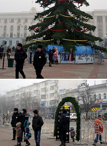 На фото: зате головна кримська ялинка на центральн╕й площ╕ Лен╕на – п╕д над╕йним захистом!