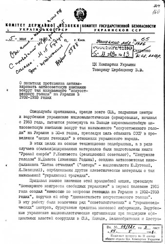 СБУ ОПРИЛЮДНИЛА АРХ╤В КДБ ПРО ЗАМОВЧУВАННЯ ГОЛОДОМОРУ