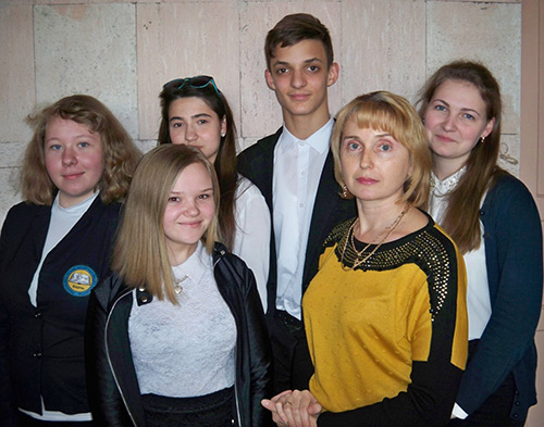 На св╕тлин╕: справа нал╕во (перший ряд): наша вчителька укра╖нсько╖ мови та л╕тератури В╕ра Павл╕вна Пальоха, Чуйкова С.; (другий ряд): ╤са╓ва А., Ламеко ╤., Б╕лан Н., Копилова А. *** Як пов╕домив голова жур╕ Кримсько╖ рег╕онально╖ ол╕мп╕ади з укра╖нсько╖ мови, доцент кафедри укра╖нсько╖ ф╕лолог╕╖ Кримського федерального ун╕верситету, кандидат ф╕лолог╕чних наук Микола Пелипась, цього року у конкурс╕ взяли участь понад с╕мдесят учн╕в 9-11 клас╕в з кримських шк╕л. Переможцями стали: ╢лизавета Копт╓ва (9 клас, С╕мферопольська г╕мназ╕я №11), Кр╕ст╕на Карпова (10 клас, С╕мферопольський район, Молод╕жненська школа), Маргарита Дерусова (11 клас, м. Судак, Веселовська середня школа). Як зазначив пан Микола, роботи переможц╕в ╕ призер╕в загалом хорош╕, принаймн╕, г╕дн╕ призових м╕сць. Зв╕сно, загальний р╕вень роб╕т дещо знизився. Але там, де вчител╕, попри об'╓ктивн╕ причини, дбають про те, щоб д╕ти знали мову, писали грамотно, м╕ркували розлого - результат ╓. В╕дсутн╕сть п╕дручник╕в з укра╖нсько╖ мови та л╕тератури в школах таки да╓ться взнаки. Багато роботи ведеться на ентуз╕азм╕, та все ж спод╕ва╓мося, що ол╕мп╕ада з укра╖нсько╖ мови буде продовжуватися з року в р╕к ╕ д╕ти показуватимуть висок╕ результати й надал╕.