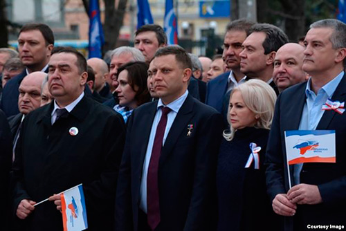 На фото: ватажки ОРДЛО на святкуванн╕ 3-р╕ччя окупац╕╖ Криму