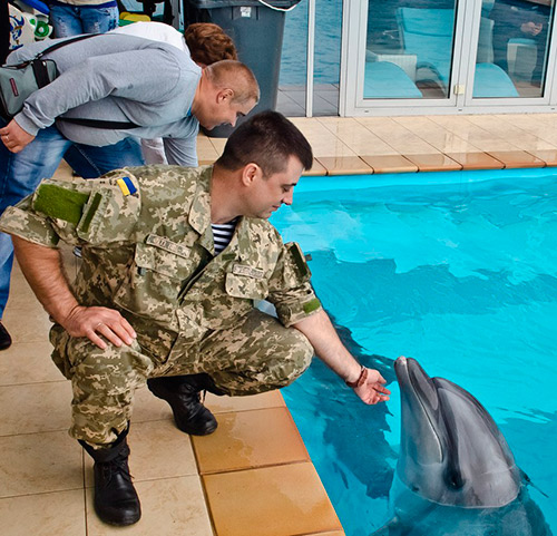 - З огляду на вже проведену роботу, ми отримали позитивн╕ результати в╕дновлення психолог╕чного стану в╕йськових. Зокрема, проводили сеанси терап╕╖ б╕йц╕в за допомогою звук╕в, в╕деопоказ╕в дельф╕н╕в тощо. Кр╕м того, експериментально були залучен╕ в╕йськовослужбовц╕ учасники АТО на сеанси реаб╕л╕тац╕╖ за допомогою дельф╕нотерап╕╖, безпосередньо сп╕лкуючись з тваринами, - говорить полковник Андр╕й Дончак.