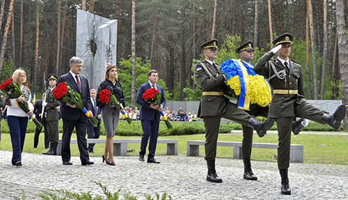 Бик╕внянський л╕с не ╓дине м╕сце в Укра╖н╕, де виконувалися ╕ перевиконувалися так зван╕ л╕м╕ти на розстр╕л людей, яких масово знищував тотал╕тарний комун╕стичний режим. Але це чи не найб╕льша братська могила в Укра╖н╕, де спочили десятки й десятки тисяч невинно уб╕╓нних. Про це сказав Президент Петро Порошенко п╕д час виступу на церемон╕╖ вшанування пам’ят╕ жертв пол╕тичних репрес╕й у Нац╕ональному ╕сторико-мемор╕альному запов╕днику «Бик╕внянськ╕ могили». Глава держави пов╕домив, що вчора повернувся з Берл╕на, де мав багатогодинну, дружню та зм╕стовну розмовою з Канцлером Н╕меччини Ангелою Меркель. А п╕сля переговор╕в укра╖нська делегац╕я зав╕тала до Оран╕╓нбурга, до мемор╕ального комплексу на територ╕╖ колишнього концтабору Заксенгаузен. «Там ми вшанували пам’ять жертв нацизму – тих укра╖нц╕в, тисяч укра╖нц╕в, так само як ╕ представник╕в ╕нших народ╕в, як╕ там утримувались», - розпов╕в Президент, додавши, що за св╕дченнями в цьому табор╕ загинуло в╕д 80 до 100 тисяч людей. «Це саме той таб╕р, де закатували Олега Ольжича, де утримувалися Ярослав Стецько та Степан Бандера. Неначе м╕сток у час╕: батько Степана Бандери, греко-католицький священик отець Андр╕й, як стверджують ╕сторики, похований саме у цьому л╕с╕. Тут наприк╕нц╕ 30-х рок╕в минулого стол╕ття московсько-комун╕стичний режим на п’яти гектарах земл╕ влаштував справжн╓ пекло. Тут б╕льшовики протягом чотирьох рок╕в замордували десятки тисяч людей», - сказав Петро Порошенко. Президент зазначив, що п╕сля зак╕нчення Друго╖ св╕тово╖ в╕йни таб╕р Заксенгаузен не закрився, а перейшов у розпорядження НКВС, про╕снував п╕сля в╕йни ще ц╕лих п’ять рок╕в. «Утримували та мордували там не лише колишн╕х член╕в нацистсько╖ парт╕╖, але й н╕мецьких соц╕ал-демократ╕в, ╕ просто незадоволених впровадженням комун╕зму у Сх╕дн╕й Н╕меччини. ╤ нав╕ть сво╖х – колишн╕х радянських в╕йськовослужбовц╕в, як╕ пройшли полон ╕ оч╕кували черги на Сиб╕р, куди ╖х прир╕к Стал╕н», - зазначив в╕н. «Побувавши вчора в Заксенгаузен╕ ╕ стоячи сьогодн╕ тут у Бик╕вн╕, ще ╕ ще раз усв╕домлюю, в╕дчуваю кожною кл╕тиною людожерську под╕бн╕сть нацистського та стал╕нського режим╕в», - наголосив Президент. Глава держави нагадав, що парламентська асамблея ОБС╢ в╕с╕м рок╕в тому ухвалила дуже важливу резолюц╕ю про тотожн╕сть цих режим╕в ╕ нав╕ть запропонувала запровадити сп╕льний день пам’ят╕ жертв стал╕н╕зму та нацизму. «Ось чому, якщо хто не зрозум╕в, протягом останн╕х рок╕в в Укра╖н╕ ╕ було проведено декомун╕зац╕ю. Ось чому в╕дбувся так званий «лен╕нопад». Ось чому очистилася карта Укра╖ни в╕д ╕мен ╖╖ кат╕в та душогуб╕в. Ось чому оновилися таблички з назвами вулиць. Комун╕стичним ╕долам нема ╕ не буде м╕сця в наш╕й кра╖н╕», - п╕дкреслив Президент. «╤ без п╕дконтрольних ФСБ-КДБ соц╕альних мереж м╕й укра╖нський народ теж здатен прожити. ╤, до реч╕, закон про заборону георг╕╖вських стр╕чок я теж п╕дпишу, щойно в╕н над╕йде до мене ╕з Верховно╖ Ради. Чому? Тому, що це не ╓ символ╕кою Друго╖ св╕тово╖, це символ╕ка – символ агрес╕╖ проти Укра╖ни 2014-2017 рок╕в. Тому що обв╕шан╕ цими стр╕чками бойовики вбивають наших во╖н╕в кожного дня ╕ ноч╕», - зазначив Петро Порошенко ╕ додав, що ╕ прямо зараз рос╕йськ╕ терорис