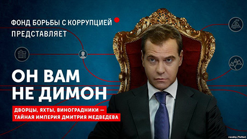 Рос╕йська Генпрокуратура в╕дмовилася перев╕ряти прем’╓р-м╕н╕стра Дмитра Медвед╓ва щодо корумпованост╕ за запитом депутата Держдуми в╕д КПРФ Валер╕я Рашк╕на. Про це пов╕домля╓ Рад╕о «Свобода». Рашк╕н звернувся до прокуратури за перев╕ркою «можливо╖ корупц╕йно╖ д╕яльност╕» голови уряду п╕сля появи ф╕льму-розсл╕дування Олекс╕я Навального «Он вам не Димон» про ел╕тну нерухом╕сть Медвед╓ва. Прокурори в╕дпов╕ли депутату, що це «не в╕дноситься до повноважень орган╕в прокуратури». Рашк╕н направляв запити в ФСБ, Сл╕дчий ком╕тет ╕ Генпрокуратуру. Сл╕дчий ком╕тет перенаправив запит в Генпрокуратуру, а Генпрокуратура повернула документ у Сл╕дчий ком╕тет. ФСБ позначила свою в╕дпов╕дь Рашк╕ну грифом «для службового користування», що забороня╓ публ╕кувати документ. Депутат зазначив, що ╕нформац╕╖ про нерухом╕сть Медвед╓ва у в╕дпов╕д╕ «трохи менше н╕ж нуль». На початку березня Фонд боротьби з корупц╕╓ю Олекс╕я Навального опубл╕кував ф╕льм-розсл╕дування «В╕н вам не Д╕мон» про ел╕тну нерухом╕сть глави уряду Рос╕╖ Дмитра Медвед╓ва, яка, як стверджу╓ться в публ╕кац╕╖, була придбана незаконним шляхом. П╕сля цього Рашк╕н направив запити в ФСБ, Сл╕дчий ком╕тет ╕ Генеральну прокуратуру з вимогою перев╕рити нерухом╕сть Медвед╓ва. Сл╕дчий ком╕тет перенаправив запит в Генпрокуратуру. У травн╕ Генпрокуратура повернула документ в Сл╕дчий ком╕тет. Нагада╓мо, опозиц╕онер Олекс╕й Навальний оприлюднив ф╕льм-розсл╕дування «Он вам не Димон» про б╕знес-╕мпер╕ю прем’╓р-м╕н╕стра Дмитра Медвед╓ва. Стр╕чка спровокувала хвилю антикорупц╕йних м╕тинг╕в у Рос╕╖. Суд зобов’язав Навального видалити ф╕льм. http://zik.ua