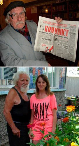 На фото: Костянтин Михайлович Петренко в редакц╕╖ «Кримсько╖ св╕тлиц╕» з компарт╕йною газетою, на чию передовицю полем╕чно в╕дгукнувся у 2006 роц╕; з онукою Наталею, 2012 р╕к