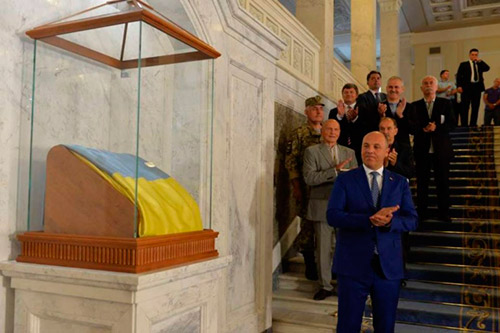 Верховна Рада витратила 1,3 млн. грн. на перенесення стац╕онарно╖ експозиц╕╖ "Прапор Укра╖ни". Це виплива╓ з тендерно╖ документац╕╖, яка розм╕щена на сайт публ╕чних закуп╕вель Prozorro. Роботи з перенесення прапору з другого поверху на сходи м╕ж першим та другим поверхом парламентських кулуар╕в по документах провели як "кап╕тальний ремонт та реставрац╕ю". При цьому дерев’яну експозиц╕ю зам╕нили на мармурову. Також у документах йдеться, що герб з позолотою коштував 18,1 тисяч╕ гривень. Участь у тендер╕ брала лише одна ф╕рма - ТОВ "Буд╕вельно-реставрац╕йна ф╕рма "В╕дродження". Протокол погодження догов╕рно╖ ц╕ни з╕ сторони Верховно╖ Ради п╕дписав перший заступник кер╕вника Апарату ВРУ – керуючий справами Петро Боднар. Власник ф╕рми Ярослав Граужис у 6-му скликанн╕ був пом╕чником депутата-рег╕онала Юл╕╖ Ковальово╖. 23 серпня у День Прапора стац╕онарну експозиц╕ю "Прапор Укра╖ни" у Верховн╕й Рад╕ в╕дкрив Андр╕й Паруб╕й. В експозиц╕╖ використову╓ться прапор, який вперше внесли до сес╕йно╖ зали парламенту 24 серпня 1991 року. «Укра╖нська правда»