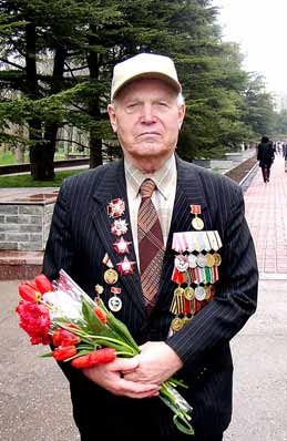 На фото Ю. ЖАГЛІНА: ветеран Великої Вітчизняної війни, учасник боїв за визволення Сімферополя танкіст К. П. Крапівін.