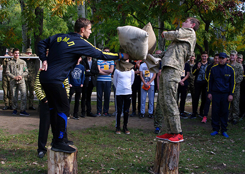 У В╕йськово-морському л╕це╖ в╕дбулася 10-та юв╕лейна ╕сторично-спортивна програма "Козацьк╕ ╕гри". Це справжн╓ козацьке свято з п╕снями, танцями, спортивними шоу-програмами, з силовими забавами. ╤ не випадково, що кожного року саме у жовтн╕ проходять ц╕ д╕йства. Адже 14 жовтня в╕дзначаються одночасно три свята - День захисника Укра╖ни, Покрови Пресвято╖ Богородиц╕ та День Козацтва. Символ╕чно, що День захисника Укра╖ни встановлено саме на День Козацтва, адже ╕стор╕я козак╕в почина╓ться ще у 1492 роц╕, коли вони вперше оф╕ц╕йно згадуються. В цей р╕к козаки атакували турецьку в╕йськово-морську галеру та визволили полонених укра╖нц╕в, створивши початок л╕топису сво╖х перемог. А Свято Покрови вважалося у козак╕в особливим днем - саме цього дня в╕дбувалася Козацька Рада. У цей день вибирався Отаман. Пресвяту Богородицю козаки вважали сво╓ю покровителькою ╕ дуже в╕рили в ╖╖ силу. А з часом свято набуло й козацького зм╕сту ╕ отримало ще одну назву - Козацька Покрова. Нагада╓мо, що "Козацьк╕ ╕гри" були започаткован╕ у В╕йськово-Морських Силах ще у 2006 роц╕, в Севастопол╕. Протягом 2006-2013 рок╕в вихованц╕ В╕йськово-морського л╕цею виборювали призов╕ м╕сця, тому саме у цьому в╕йськовому заклад╕ в╕дновлено змагання юних козак╕в. – Це свято ма╓ важливе значення для патр╕отичного виховання молод╕, - зазначив начальник в╕дд╕лу ╕нформац╕йно-пропагандистського забезпечення Командування ВМС ЗС Укра╖ни кап╕тан 1 рангу Роман Окружков. - Козацьк╕ змагання – це зв’язок покол╕нь – сучасних во╖н╕в та во╖н╕в минулого. Вони дають нам змогу в╕дчути дух ╕ силу наших пращур╕в, опанувати ╖х звича╖, традиц╕╖ ╕ ритуали, формують самосв╕домость та здоровий спос╕б життя майбутн╕х захисник╕в кра╖ни. У перегонах "козак╕в" взяли участь ш╕сть команд. Хлопц╕ змагалися за звання найспритн╕ших, найвправн╕ших та найсильн╕ших нащадк╕в запор╕жц╕в. – Наш╕ ╕гри в╕др╕зняються в╕д под╕бних проект╕в тим, що до них включен╕ не т╕льки спортивн╕ змагання, як╕ побудован╕ на ╕сторично достов╕рних фактах тренувань у козацьких куренях, а й конкурси на знання ╕стор╕╖ та культури укра╖нського козацтва, - розпов╕да╓ орган╕затор заходу, заслужений прац╕вник культури Укра╖ни ╤рина Павл╕щева. До реч╕, саме вона була засновником та режисером перших "Козацьких ╕гор" серед в╕йськовослужбовц╕в нац╕онального флоту у Севастопол╕. Особлив╕стю цьогор╕чних змагань було використання р╕зноман╕тних природних матер╕ал╕в для багатьох конкурс╕в, що дало змогу учасникам в╕дчути романтику сво╖х пращур╕в. Новинкою було ╕ те, що л╕це╖сти та учн╕ п╕дшефних шк╕л Одеси готували на вогнищ╕ справжн╕й козацький кул╕ш з╕ шкварками. Було складно, адже у юнак╕в практики приготування страв на вогн╕ не було. Тому правильно п╕дсмажити сало вийшло не у вс╕х. Конкурсанти у дек╕лька тур╕в показували свою силу та влучн╕сть, зокрема, стр╕ляли по "соняшниках", ходили в "пох╕д" за с╕ллю, кидали колоди та боролися з╕ вс╕лякими перешкодами. Особливо ц╕кавим був б╕й м╕шками, бо встояти на нест╕йк╕й колод╕ та ще й скинути м╕шком супротивника виявилося дуже непросто. Тут необх╕дно було мати не т╕льки добру р╕вновагу, а ще й неабияку силу. В ход╕ ╕нтелектуальних завдань учасники змагань розгадували "козацький" кросворд, перев╕ря