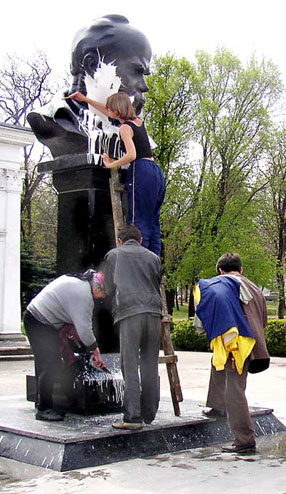 Ще один вихлюп кримського шовіністичного дикунства - у ніч з 27 на 28 квітня хтось знову облив фарбою пам`ятник Тарасу Шевченку в однойменному парку у Сімферополі. Нагадаємо, що перед 190-ю річницею з дня народження Кобзаря його погруддя також було осквернене фарбою і кислотою. "Кримська світлиця" вже якось писала, що це продовжуватиметься доти, поки не отримають належної оцінки дії тих, хто сіє в суспільстві антишевченківську, антиукраїнську, тепер ось антифіларетівську істерію, а загалом - міжнаціональну напругу. Ось на кого справді анафеми нема! Втім, щоб справа не дійшла до анафеми, може, пора вже, нарешті, декому в Криму "и власть употребить"? Чи будемо й далі лише героїчно зішкрябувати наслідки?