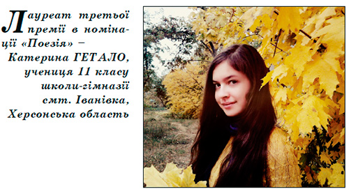 Катерина ГЕТАЛО, учениця 11 класу школи-г╕мназ╕╖ смт. ╤ван╕вка, Херсонська область